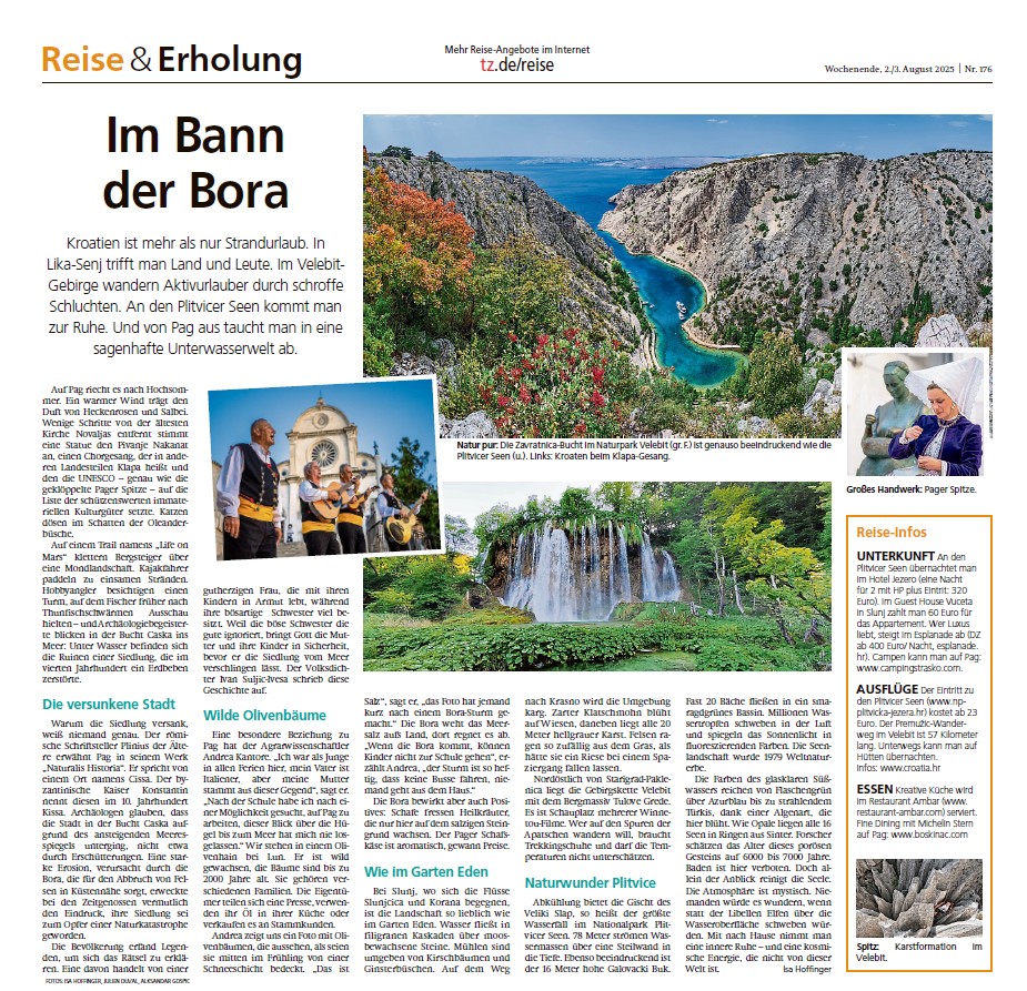 Netaknuta priroda, bogata povijest i autentični okusi Ličko-senjske županije predstavljeni su čitateljima u Bavarskoj i Baden-Württembergu kroz reportaže u uglednim njemačkim medijima poput Merkur/tz, Badische Neueste Nachrichten i Mediengruppe Bayern