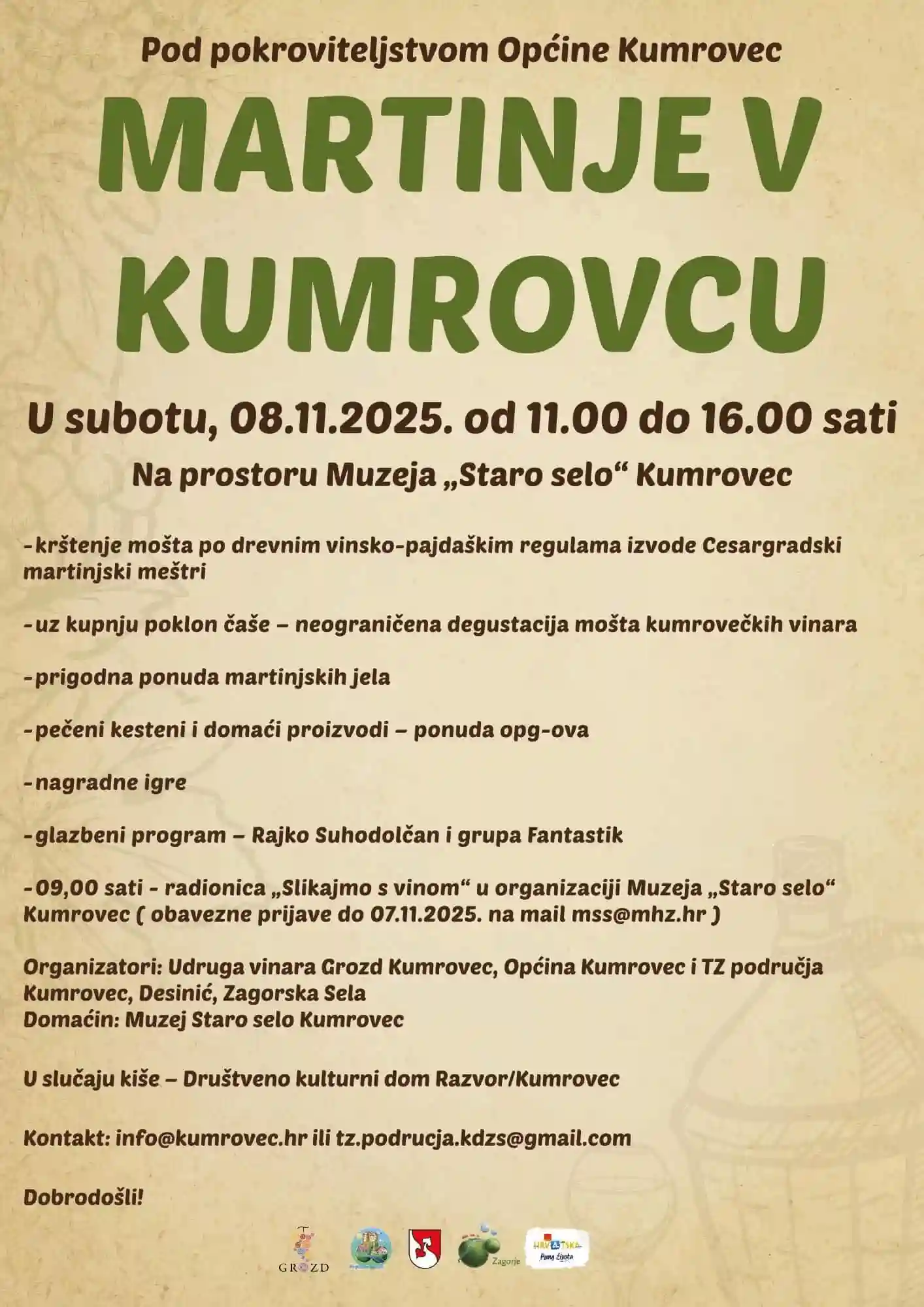 Martinje v Kumrovcu održat će se u subotu, 8. studenoga 2025. od 11 do 16 sati u prostoru Muzeja „Staro selo“